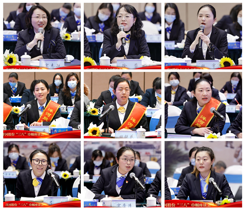 會(huì)議對(duì)各條戰(zhàn)線(xiàn)涌現(xiàn)出的“巾幗建功示范崗”集體、“三八紅旗手”進(jìn)行了表彰,并為她們送上了榮譽(yù)獎(jiǎng)?wù)潞王r花。在分享交流環(huán)節(jié),各條線(xiàn)女性代表立足崗位積極發(fā)言,圍繞個(gè)人成長(zhǎng)感悟、企業(yè)二次創(chuàng)業(yè)怎么辦、二次騰飛怎么干等方面敞開(kāi)心扉建言獻(xiàn)策,發(fā)出了鏗鏘有力、不讓須眉的決戰(zhàn)決勝之聲,現(xiàn)場(chǎng)氛圍濃厚而熱烈。